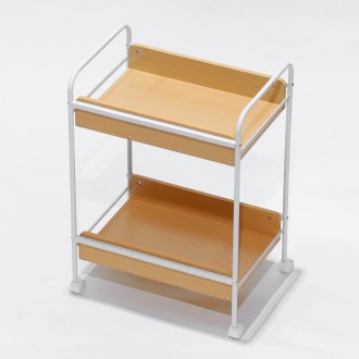 おしゃれで温かみのあるデザインが魅力の脱衣ワゴン。清潔感のあるホワイトフレームと、優しい風合いの木製棚板が様々な空間に調和します。深さのある棚板は小物の落下を防ぎ、キャスター付きで移動もスムーズ。脱衣スペースだけでなく、診察室の荷物置きとしてもご好評をいただいています。